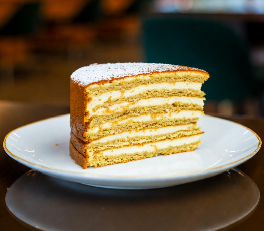 Нежный медовый бисквит с воздушным сметанным кремом. Классический десерт, который тает во рту. Сладкое наслаждение с душистым ароматом мёда.