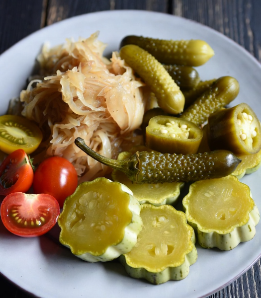 Квашеная капуста, корнишоны, халапеньо, патиссоны, черри