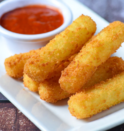 Картофель фри, кольца кальмаров, сырные палочки, стрипсы куриные +3 соуса на выбор